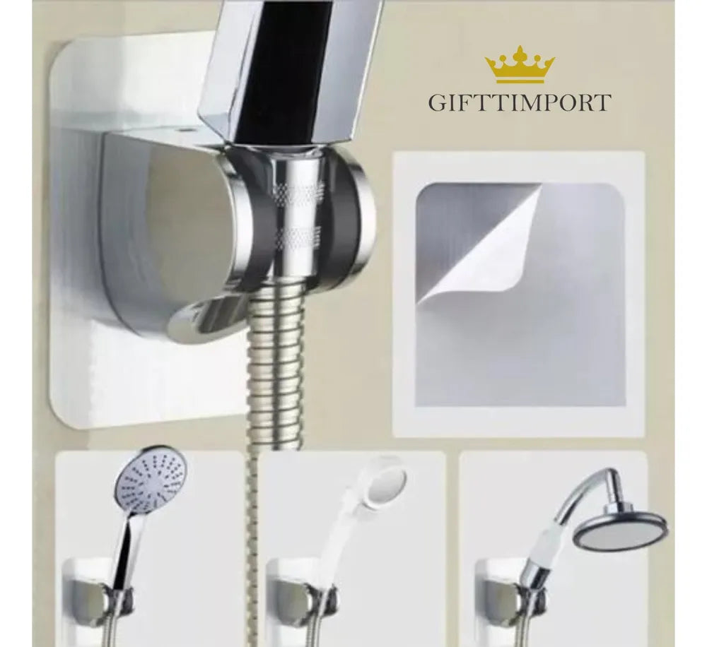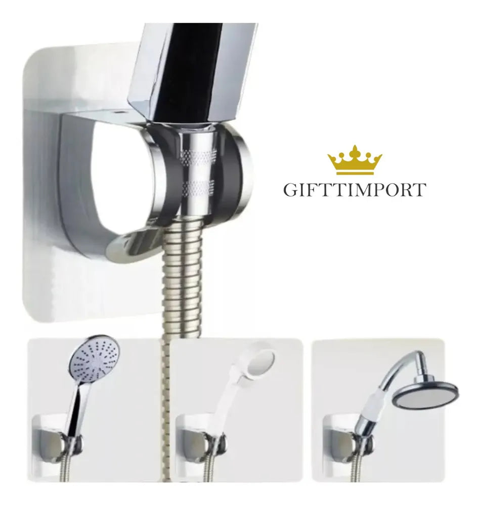Cromado - Suporte Chuveiro Chuveirinho Ducha Higiênica com Adesivo. Cabeça Ajustável. Sem Furos na Parede. Acoplável