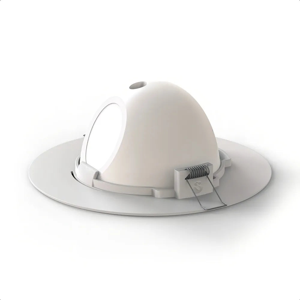 Coloca-se a Echo Pop encaixada no suporte, caixa de som e led virados para baixo, pluga-se o cabo de alimentação, e encaixa-se o conjunto no buraco, igual à um spot de luz, que se firma no local com as presilhas metálicas de mola (inclusas). O cabo de energia fica oculto, sendo alimentado por dentro do teto.