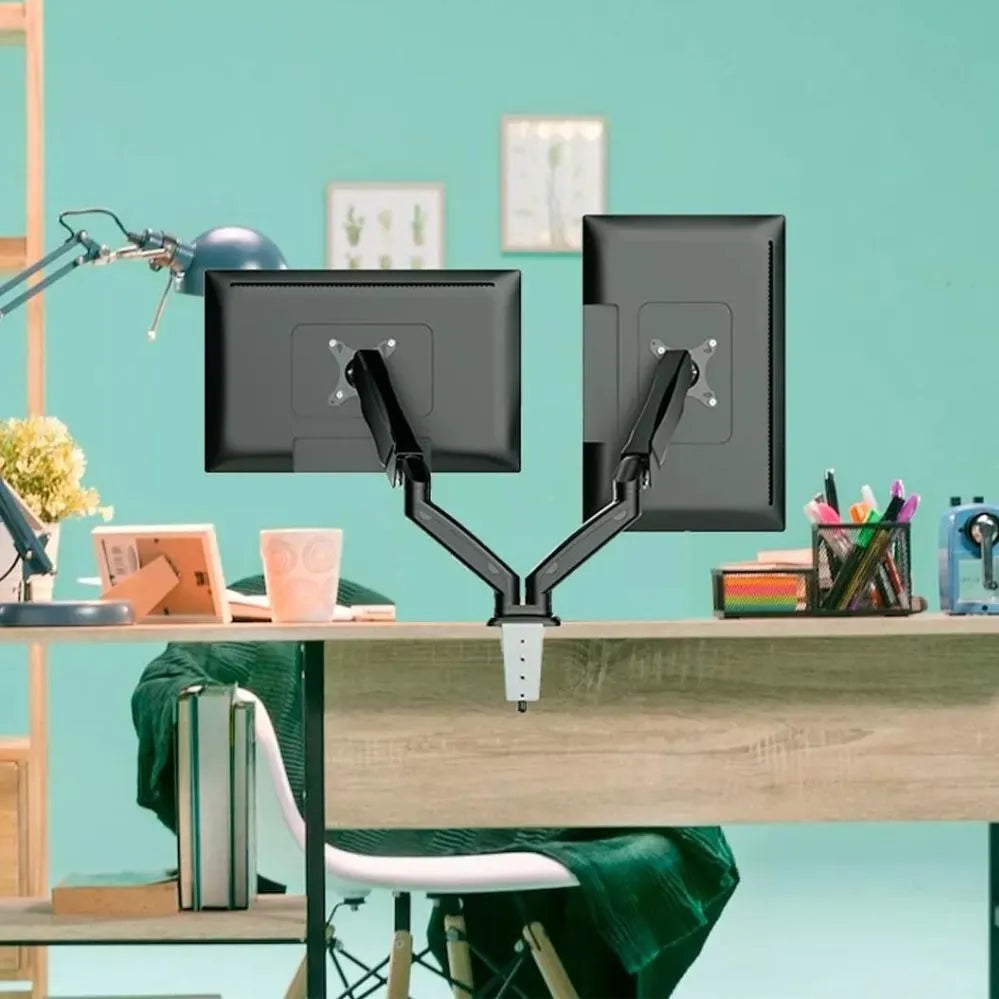 O produto é muito bom!. Os ajustes são fáceis (exceto pelo horizontal que precisa soltar a tampa do organizador de baixo - foto 2);. Possui compatibilidade para monitores com encaixe 100x100mm e 75x75mm, então não tem com o que se preocupar para os encaixes - fotos 4 e 5 (e é bem fácil instalar, talvez alguns precisem de ajuda);. Os pinos de mesa são fáceis de instalar tanto o de canto, quanto o de perfuração - foto 3 (utilizei um isopor em baixo para não fazer o aperto diretamente no vidro, em cima não precisou porque tem borrachinhas embaixo da base);. Os organizadores de cabo são bons em encaixe e parafusos (são de plástico, mas não deixam a desejar) - foto 2;. ***ah, e caso o monitor fique virando pra baixo por conta do peso, é só apertar os parafusos que ficam antes do monitor (os dois parafusos). Espero ter ajudado a esclarecer algumas dúvidas, fiquem bem!.