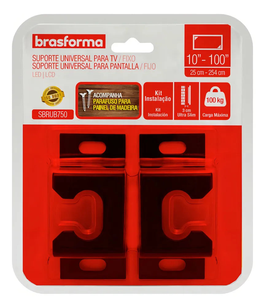Suporte FIXO UNIVERSAL para TV LED, LCD, Plasma, 3D e Smart TV de 10” a 100” – Brasforma SBRUB750