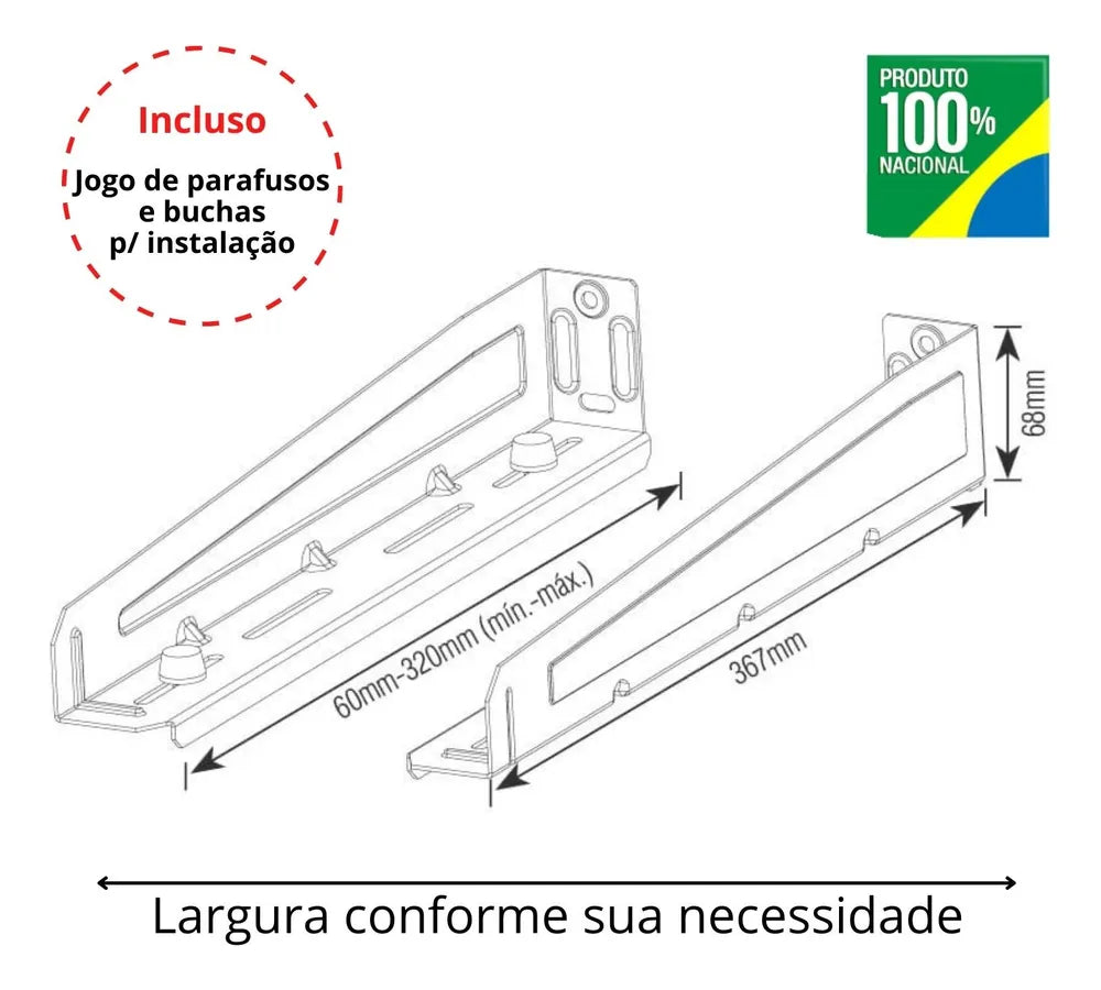 O Suporte é feito em aço carbono de altíssima resistência que garante total segurança para você e sua família. O mesmo suporta uma carga máxima de 30 quilos.