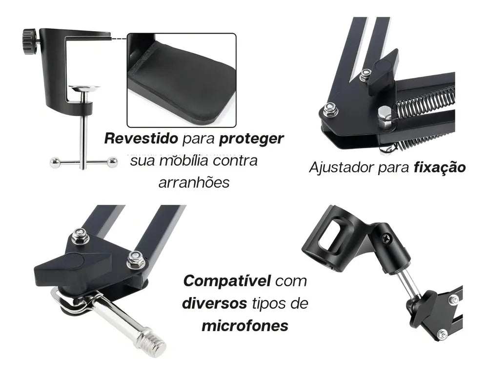 Além disso, o Suporte Pedestal Braço Articulado De Mesa Para Microfone é compatível com diversos modelos de microfones, torndo-o uma opção versátil para músicos, palestrantes, youtubers e profissiois de áudio em geral.