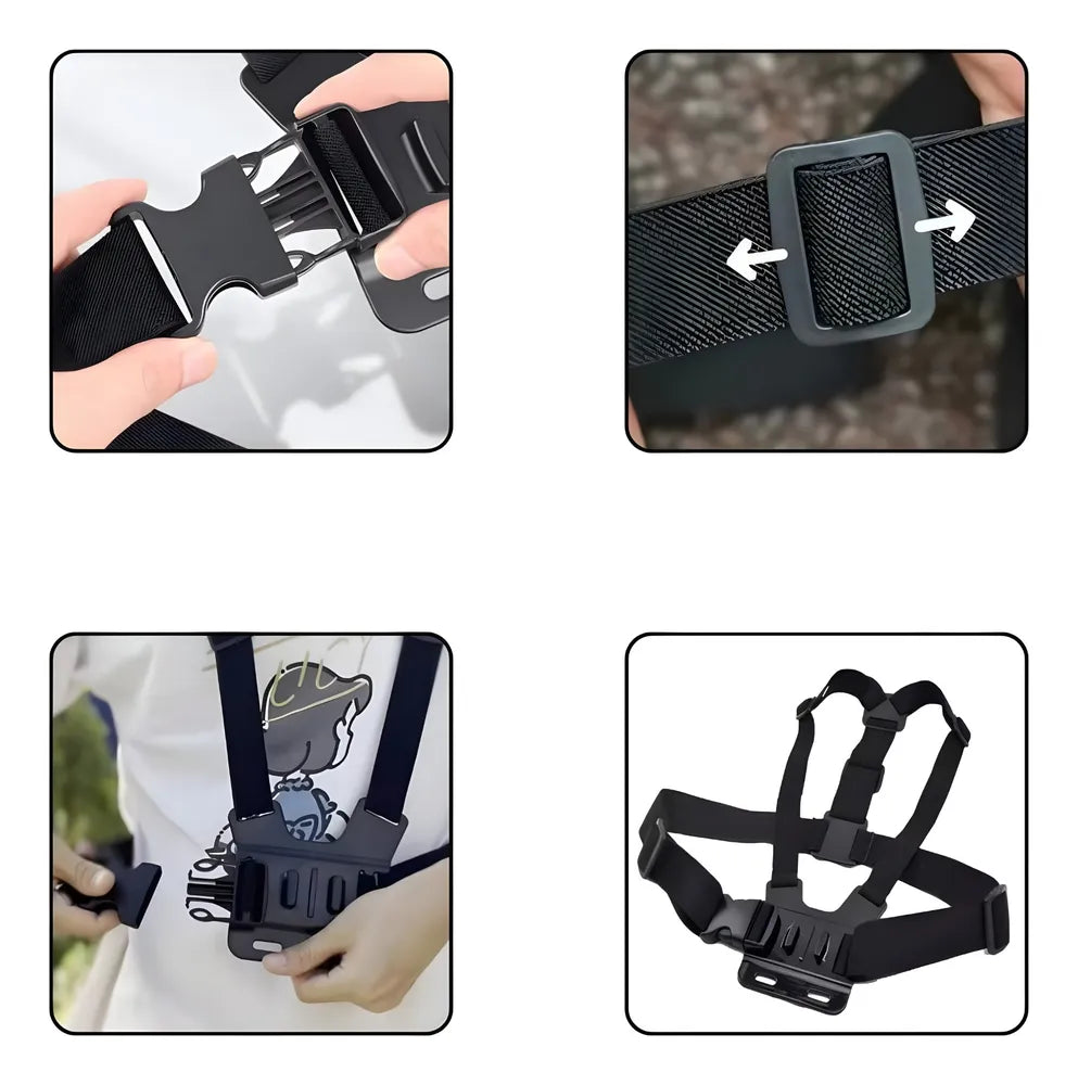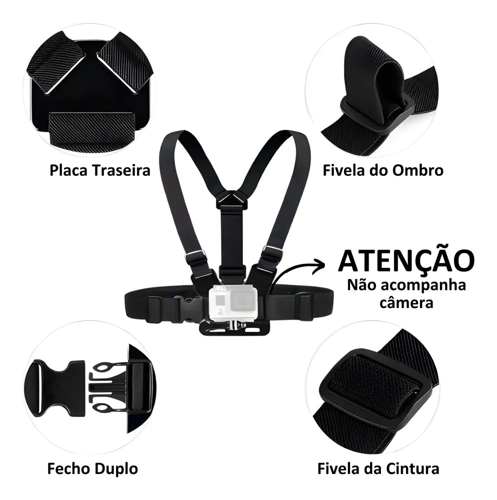 O Suporte de Peito é o acessório ideal para utilizar sua câmera em atividades como andar de bicicleta, caminhar, esquiar, remar ou qualquer aventura, permitindo fazer imagens e vídeos com as mãos livres, capturando imagens em diferentes momentos com um ótimo desempenho, fazer tomadas panorâmicas. Considerado o melhor custo benefício da atualidade.