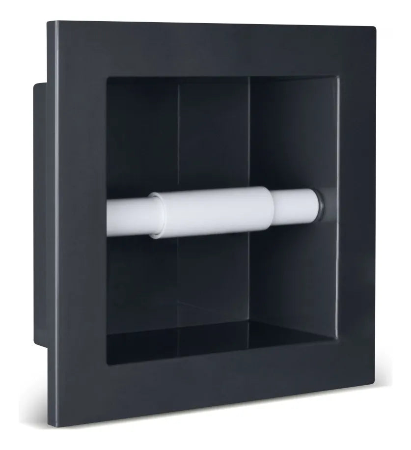 Cinza Absoluto - Suporte Porta Papel Higienico De Parede Papeleira Embutir