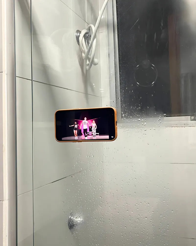 -No box do banheiro enquanto toma banho assistindo seu vídeo favorito;