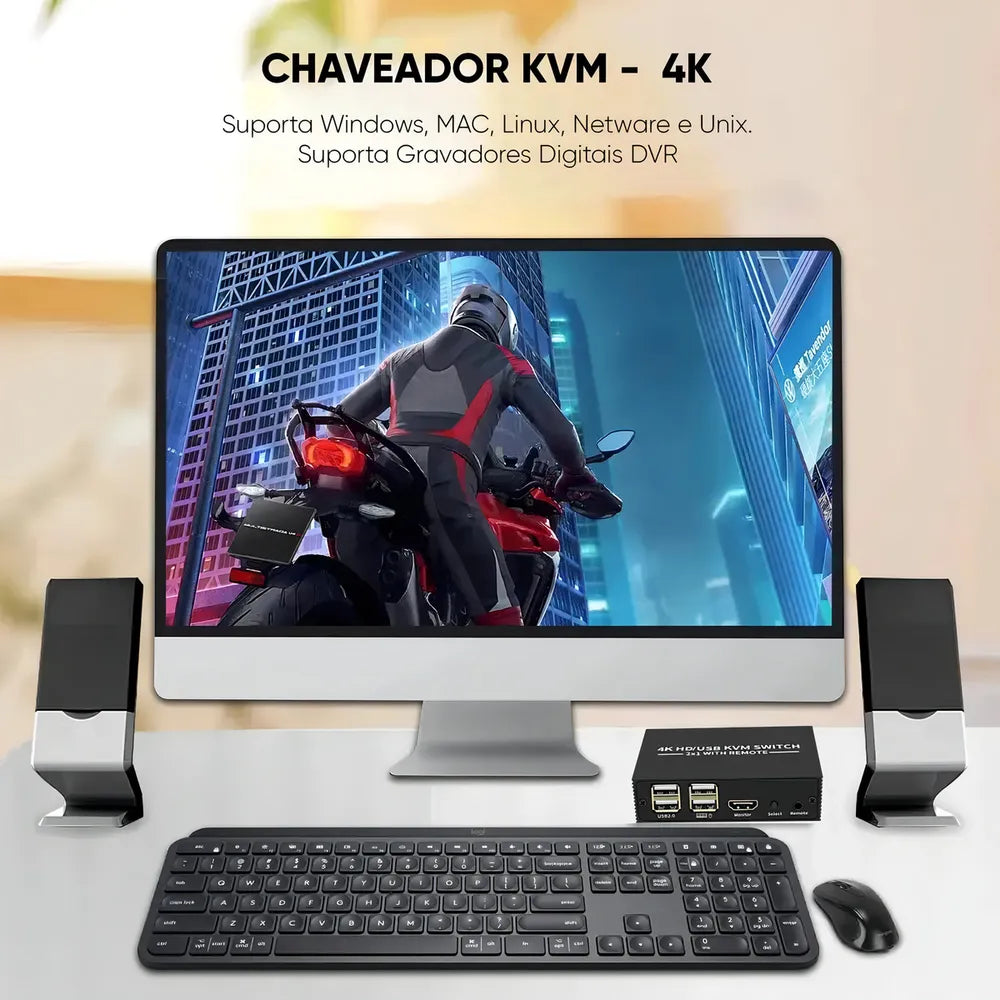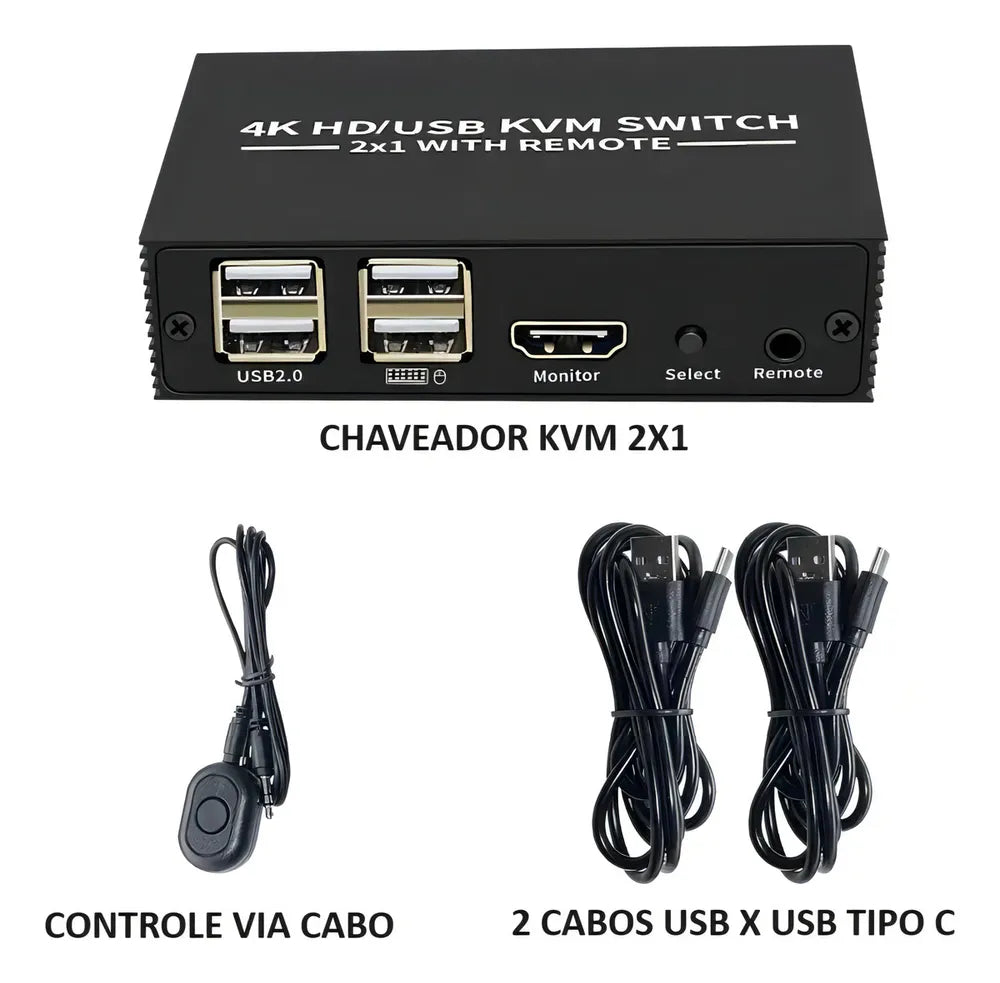 Eu trabalho com dois computadores simultaneamente, comprei o switch para poder compartilhar o monitor, o mouse, o teclado e um pendrive entre eles. Resolveu totalmente o meu problema e a conexão é ótima. Ele vem com 2 cabos usb mas não acompanha os cabos hdmi, que precisam ser adquiridos a parte para o funcionamento do switch, são necessários 3 cabos hdmi no total.