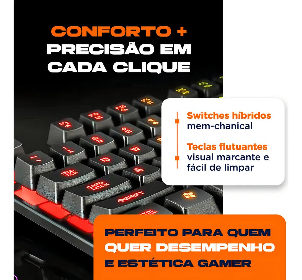 Iluminação LED RGB: Oferece cores vibrantes e personalizáveis, deixando seu setup mais estiloso.