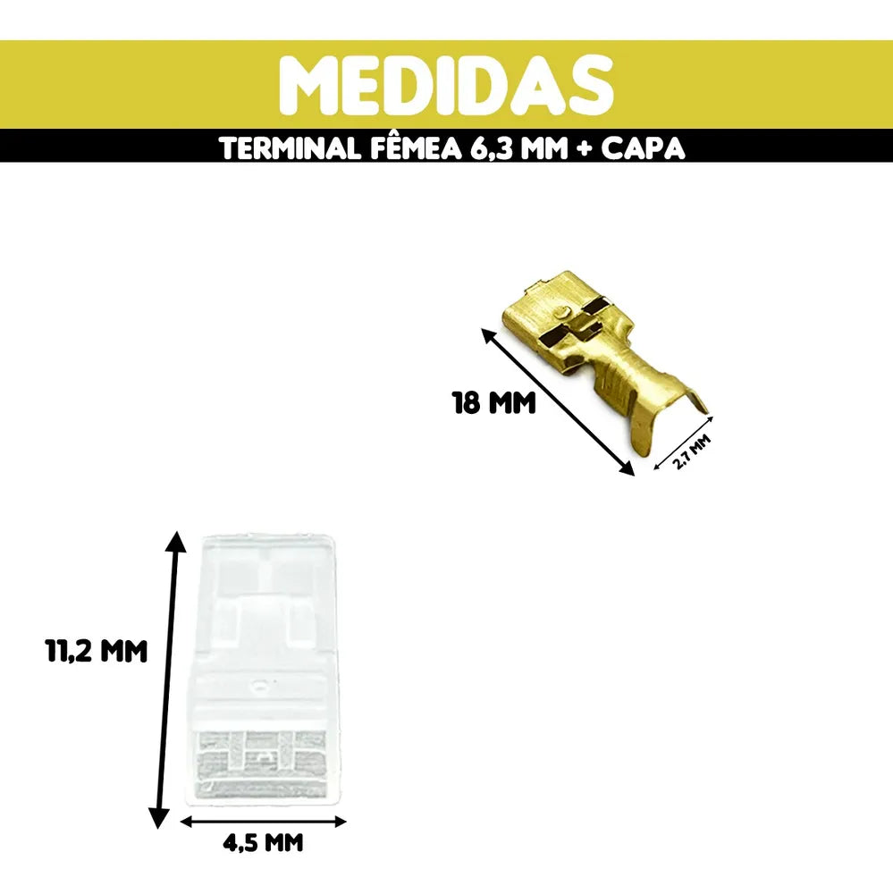 Terminal Fêmea 6,3mm (Pacote c/ 100 Unidades) + 100 capa