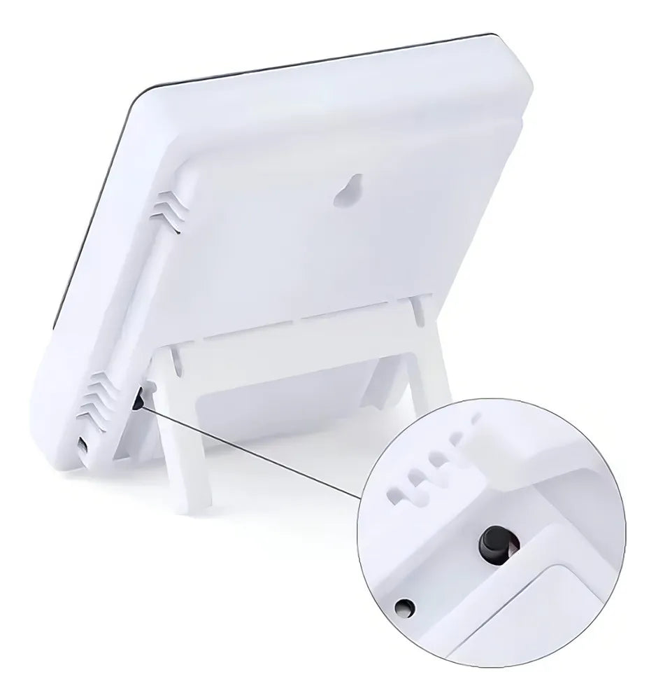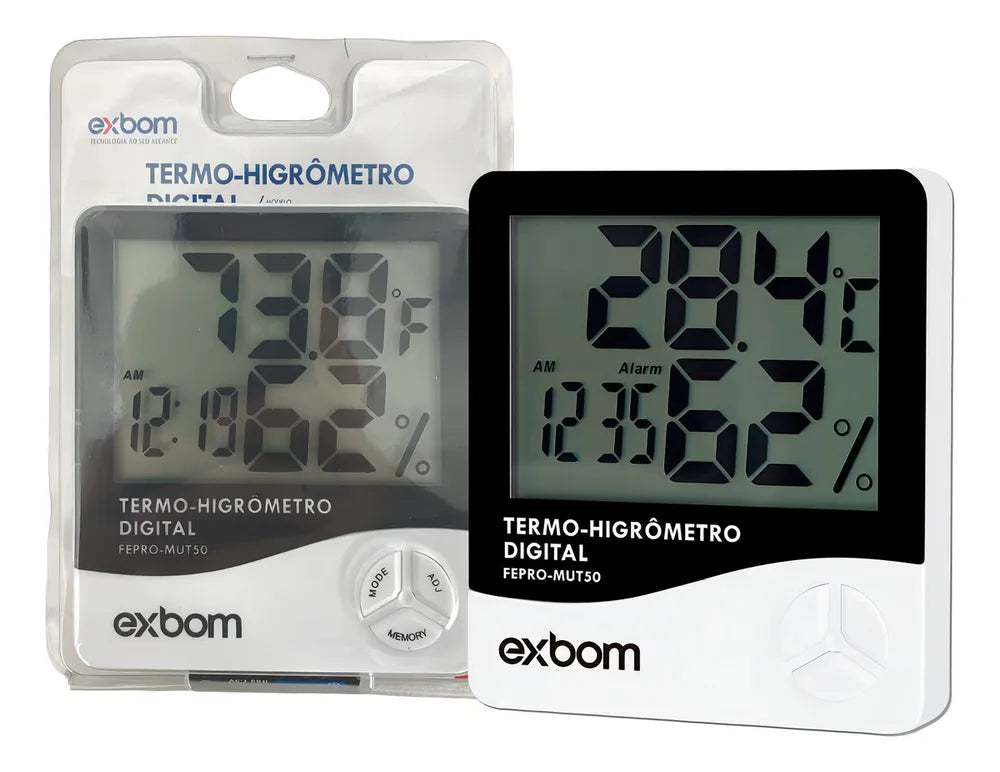 Este é um medidor de temperatura, umidade do ar e relógio digital. Além disso, possui outras funções como: Despertador, data, umidade mínima e máxima, temperatura mínima e máxima. Apresenta um design moderno com painel de LCD.