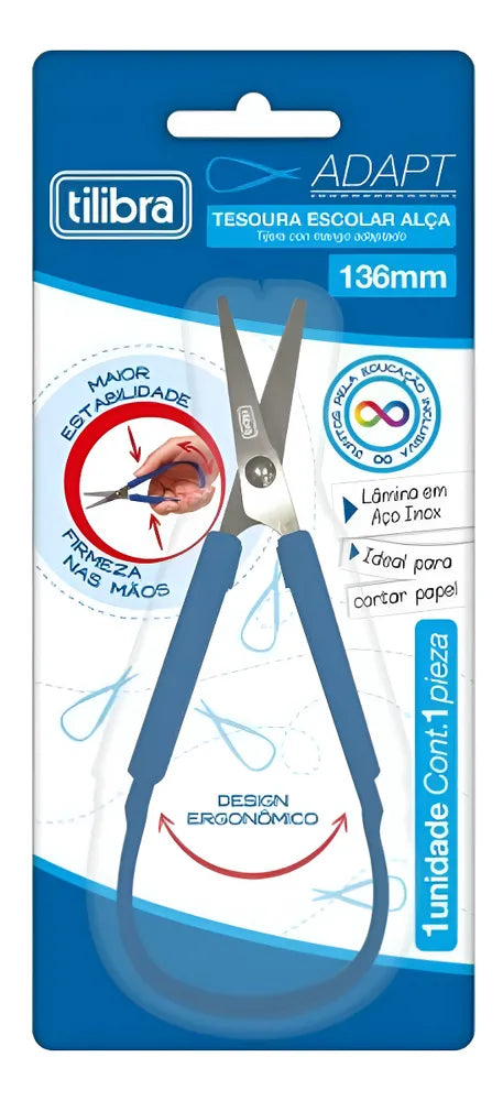 A Tesoura Escolar Adapt da Tilibra é ideal para ajudar crianças a desenvolverem ou adaptarem habilidades motoras para corte. A lâmina de aço inoxidável com ponta arredondada garante segurança no uso e a alça ergonômica emborrachada em polipropileno oferece conforto e facilidade de manuseio.