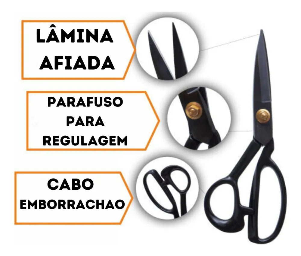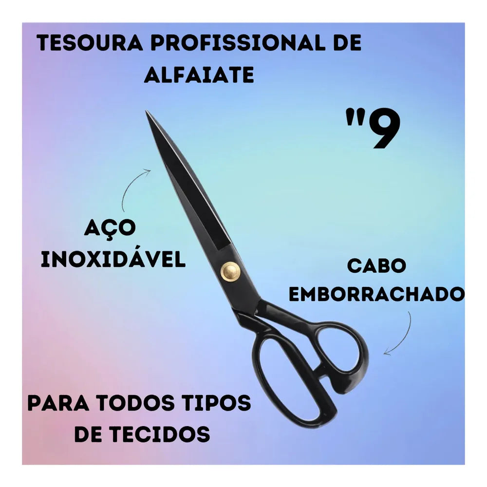 - Tesoura Profissional de Alfaiate Tecelão Corte Costura 9 Polegadas Cor Preto