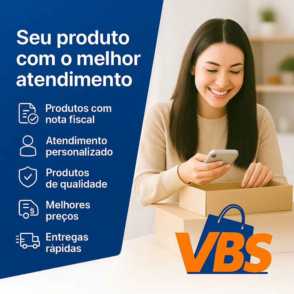 ATENÇÃO: Este produto é uma marca registrada no INPI e no BPP (Programa de Proteção à Propriedade Intelectual) do Mercado Livre, conforme a Lei de Propriedade Industrial (Lei nº 9.279/96). A VBS Brasil detém os direitos exclusivos de comercialização. A venda não autorizada constitui infração legal e poderá resultar em processo judicial para ressarcimento de lucros cessantes, além das demais sanções previstas em lei.