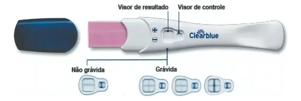 Caso seja apresentado uma segunda linha, formando um sinal de + no visor, é a indicação de gravidez.