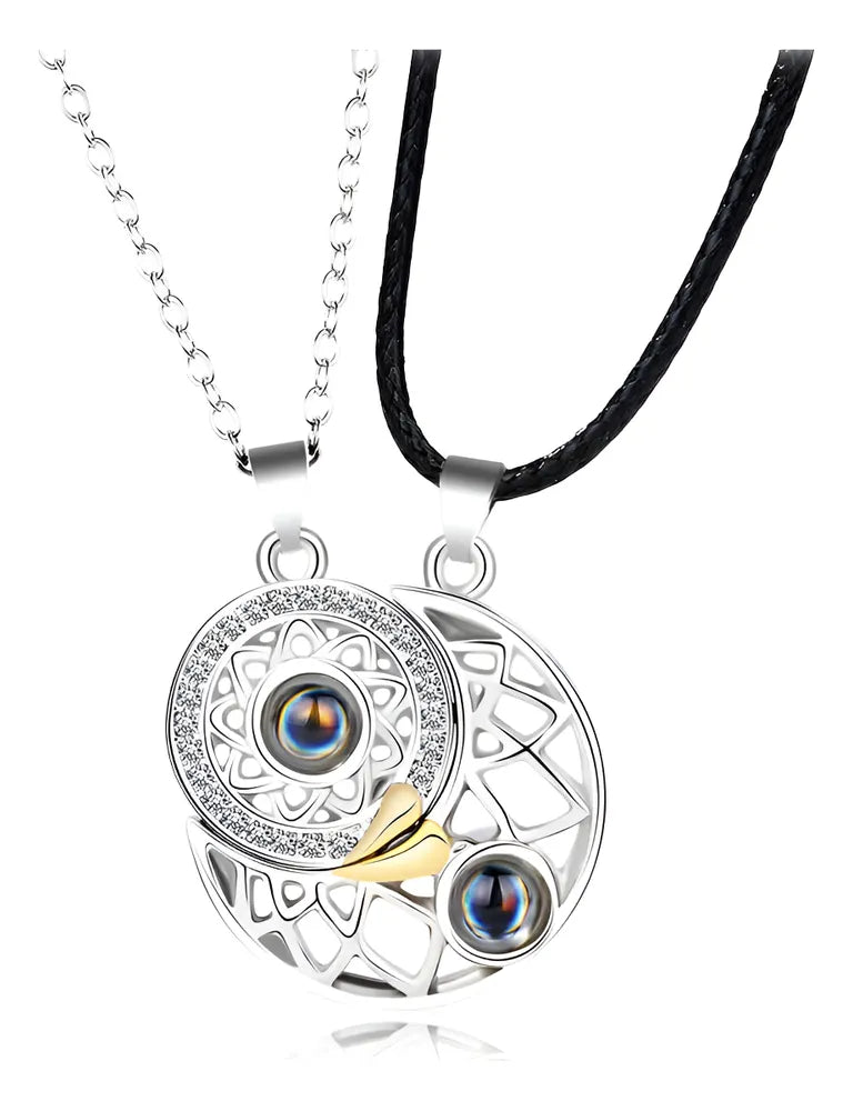Colar Duplo Magnético Projetor 100 Idiomas Sol E Lua Coração