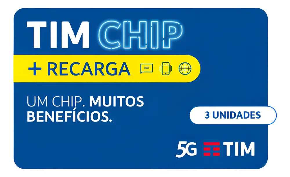 3 unidades TIM Pré Chip + Recarga (Chip Pré Pago com recarga inclusa)