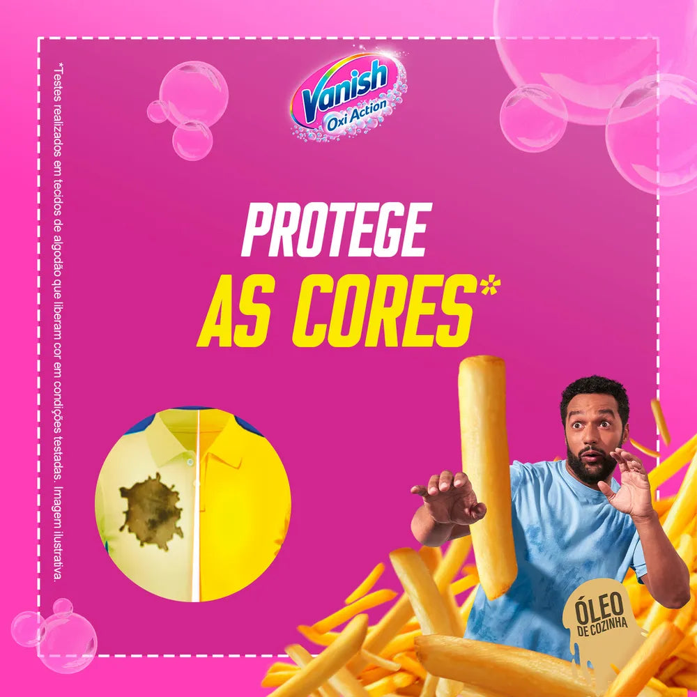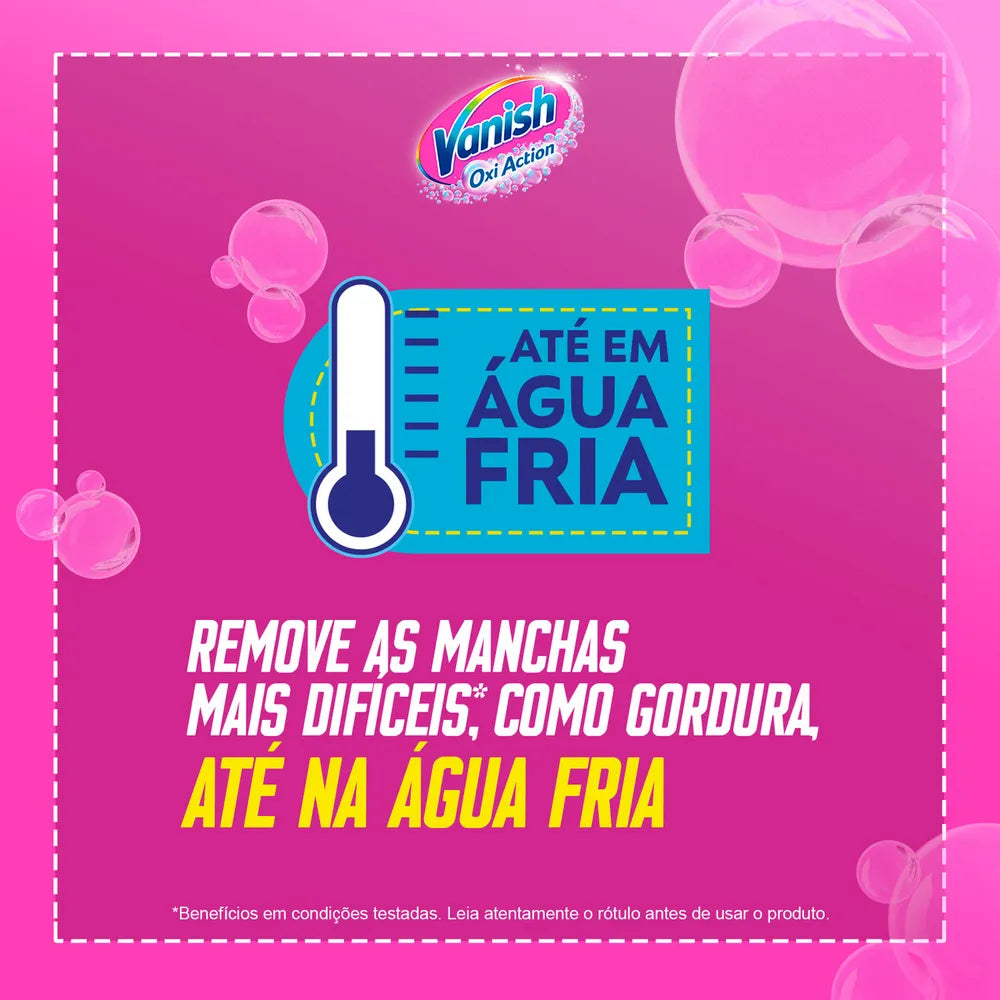 Além de eliminar manchas visíveis e invisíveis, Vanish também elimina maus odores, proporcionando uma sensação de frescor e limpeza incomparável. Não perca tempo e leve para casa o aliado perfeito para suas lavagens. Com Vanish, suas roupas ficam protegidas e livres de manchas, sempre prontas para qualquer ocasião! Compre agora e veja a diferença!