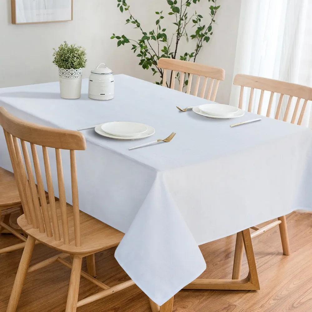 Modelo 01 - A toalha de mesa retangular para 6 lugares, com medidas de 2,20 m x 1,45 m, é confeccionada em tecido linho liso premium, ideal para quem deseja elegância na decoração da sala de jantar. Seu design clean e sofisticado combina com diversos estilos, sendo perfeita para eventos formais ou uso cotidiano.