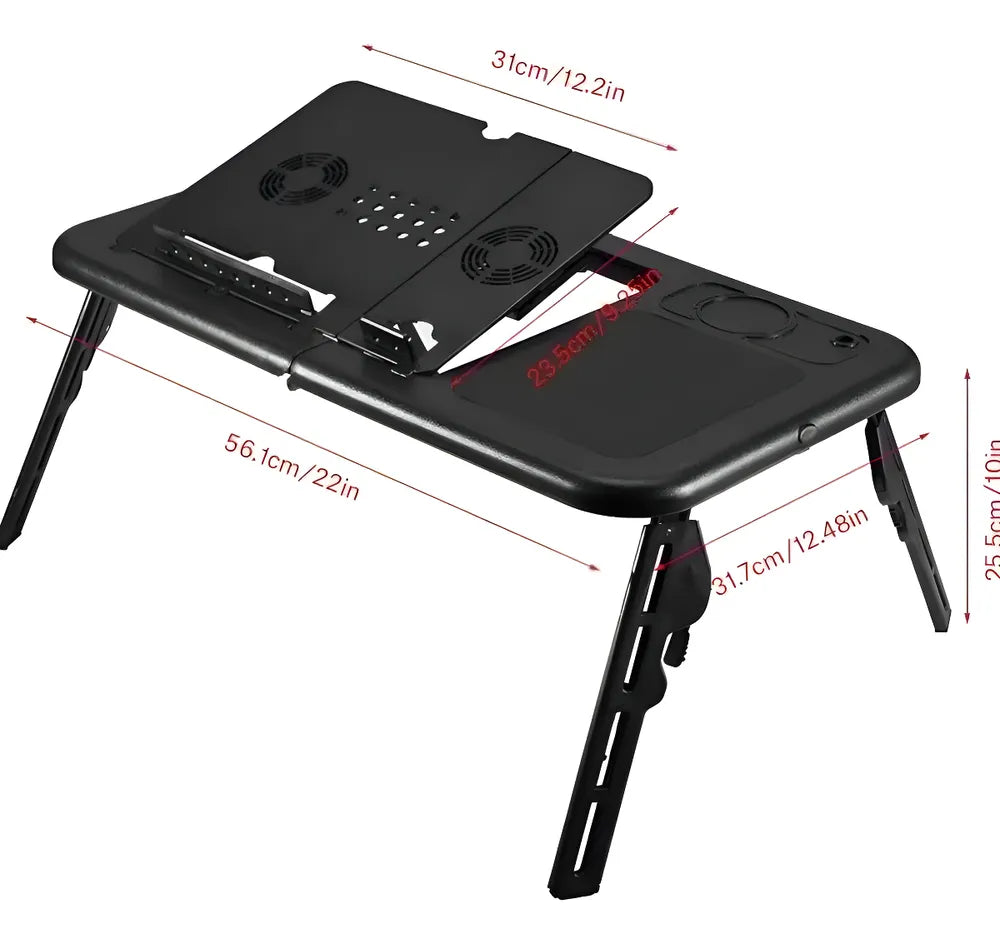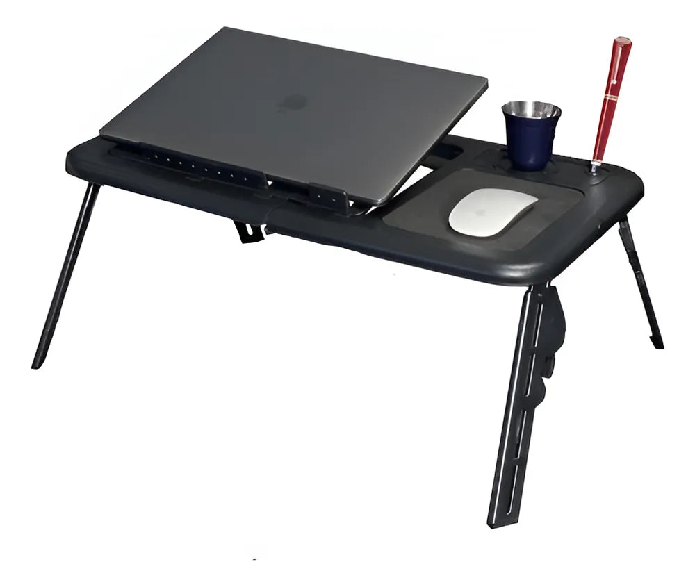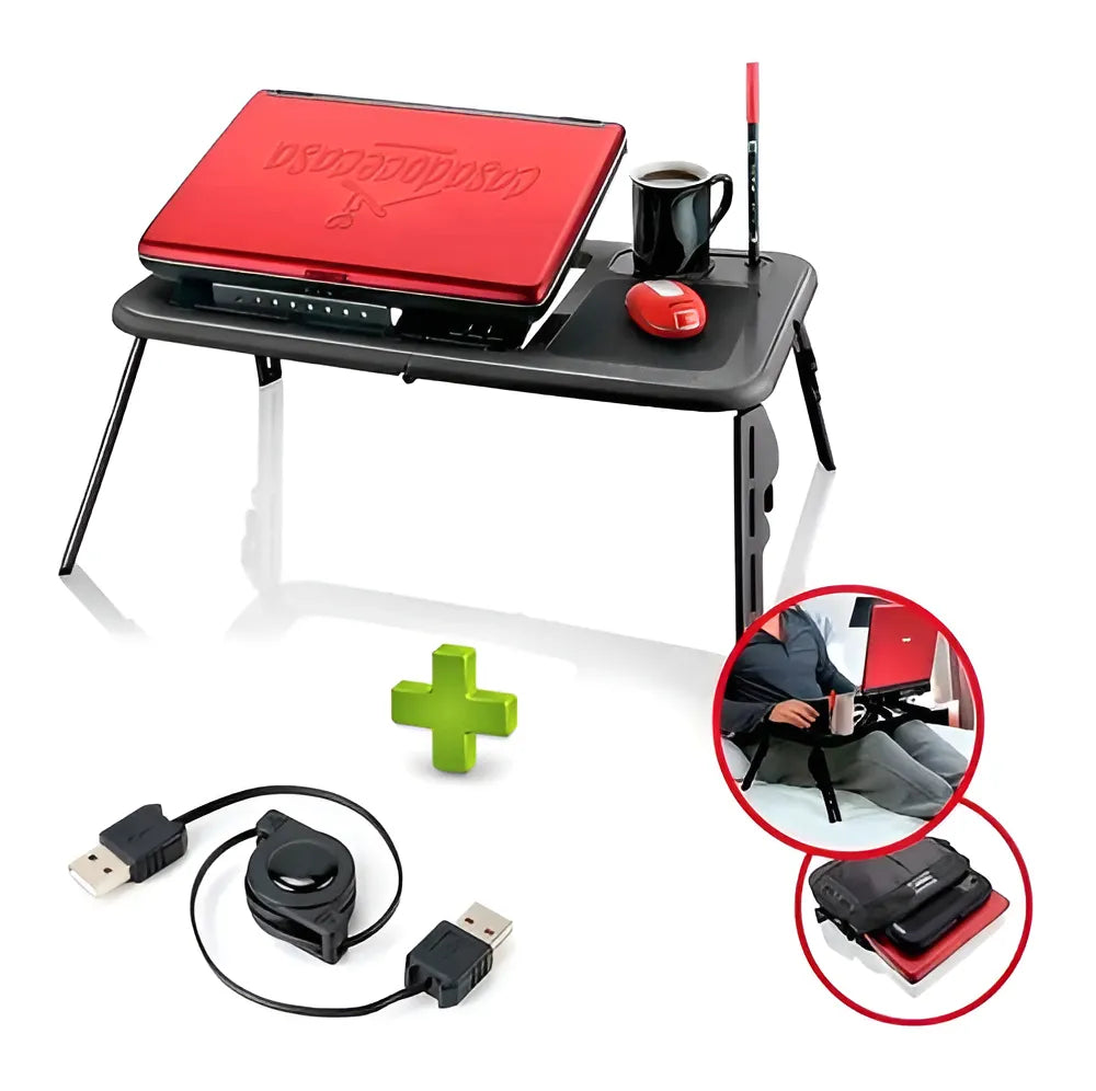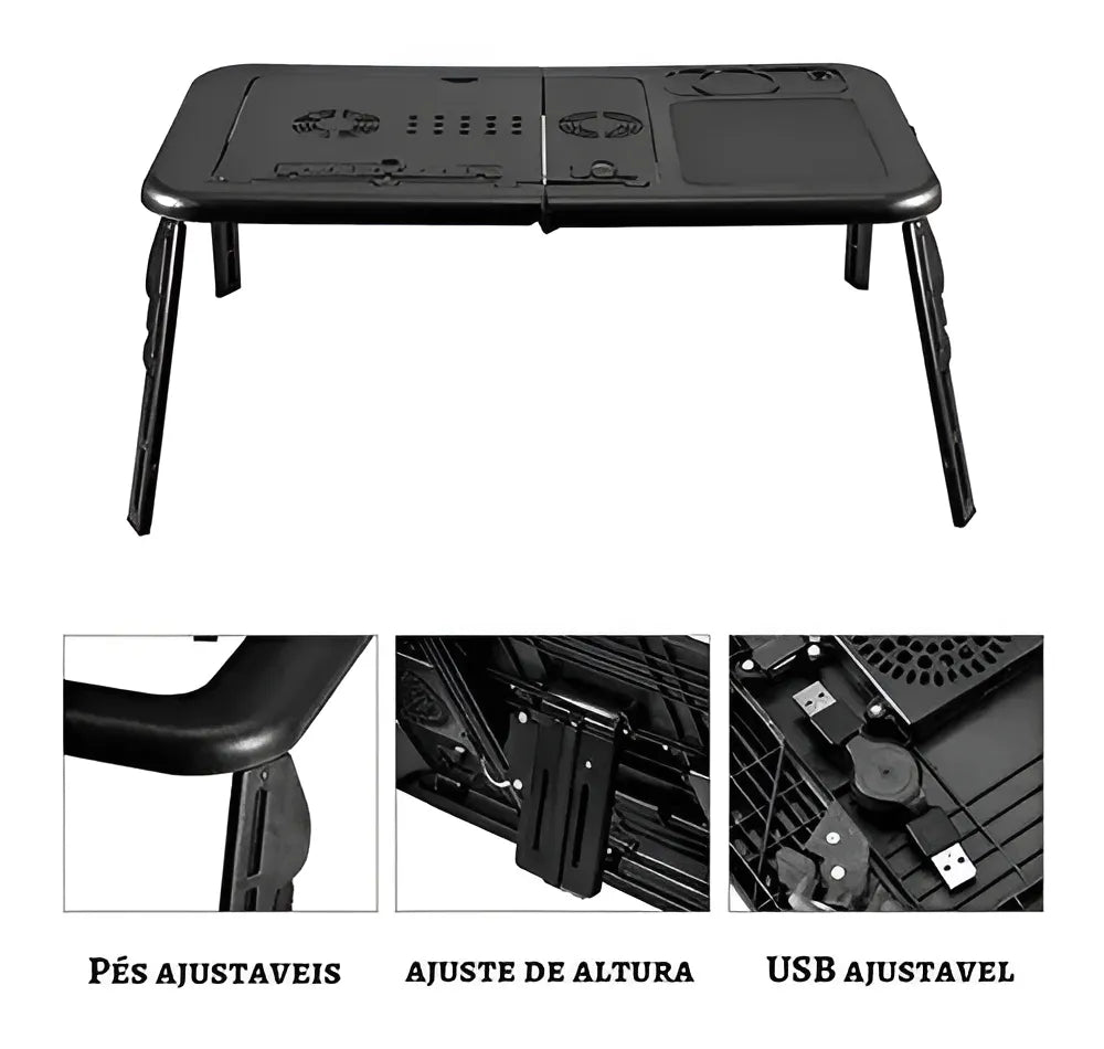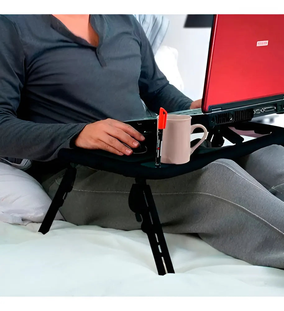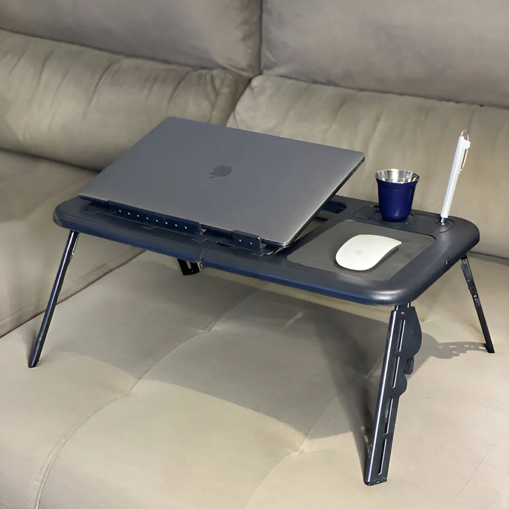 Mesa articulada para uso em diversos ambientes, proporcionando conforto e refrigeração para o notebook.