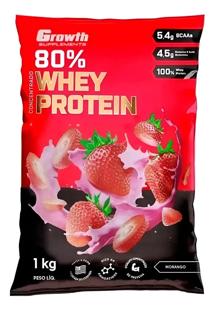 (top) Whey Protein Concentrado 80%(1kg) -growth Suppl Morango