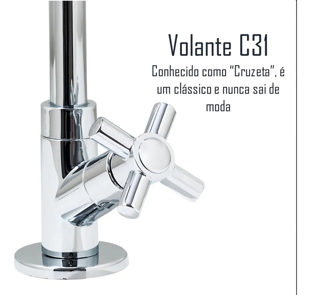 1 Torneira Banheiro Pia Bancada Lavatório Cuba Lavabo Bica Móvel Baixa ABS Cromada ¼ Volta C31 Iguatemi - Linha SINK