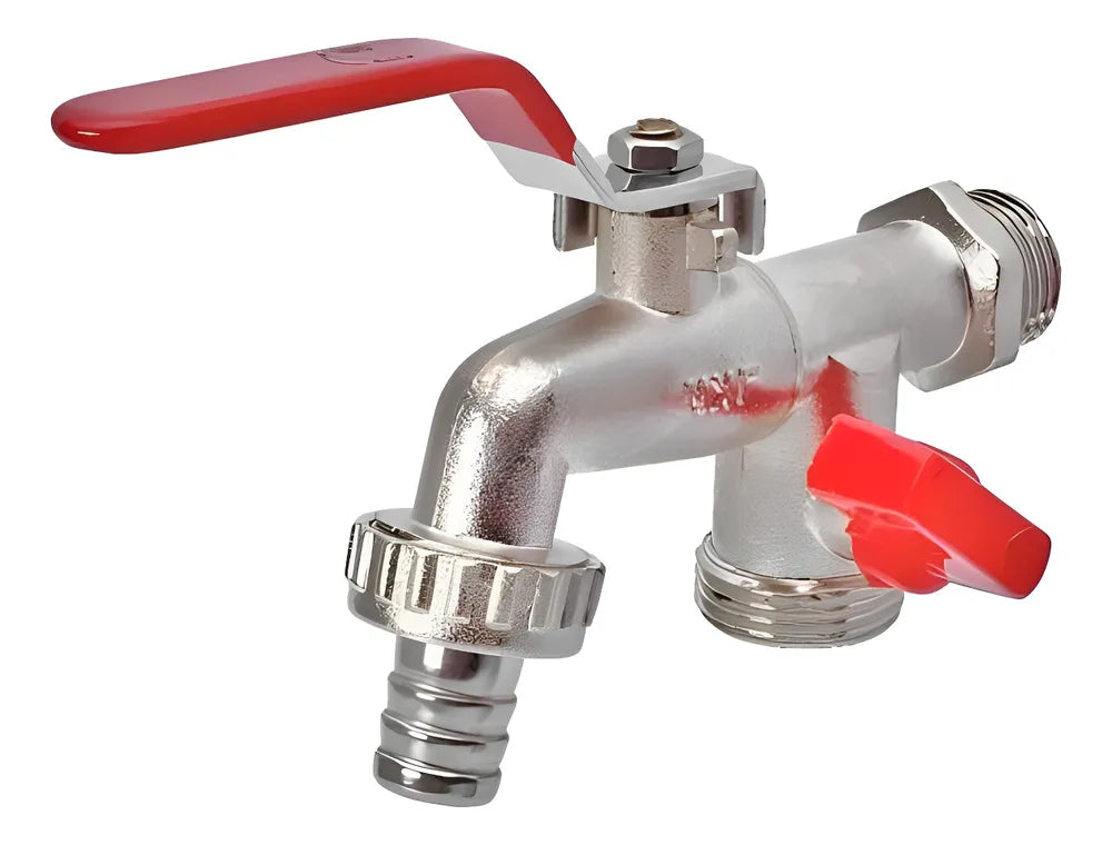 Vermelho - TORNEIRA ESFERA TANQUE E MÁQUINA DUAS SAÍDAS BICO 1/2 E 3/4.