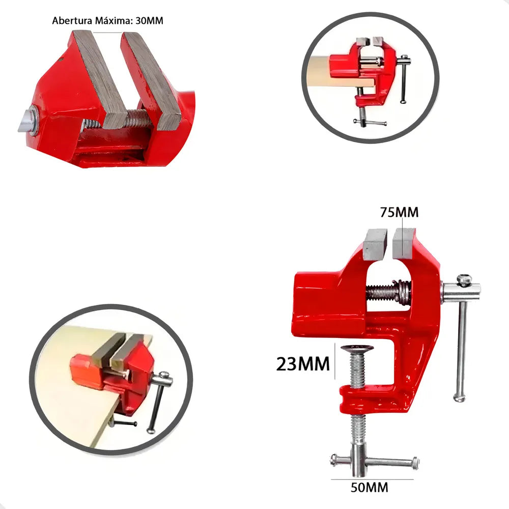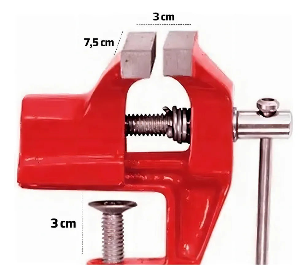 Uma morsa simples porém, funcional. Me surpreendeu pela simplicidade. Muito boa para pequenos reparos. Se sua ideia é trabalhos pesados que precise de altos torques procure outro modelo mais robusto. O bocal para afixação tem aproximadamente 30mm de abertura total sendo sua profundidade de 25mm total. Gostei da minha aquisição e recomendo!.
