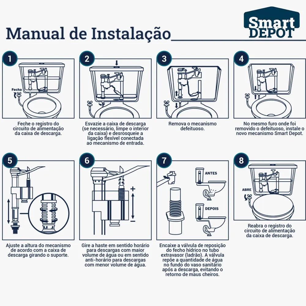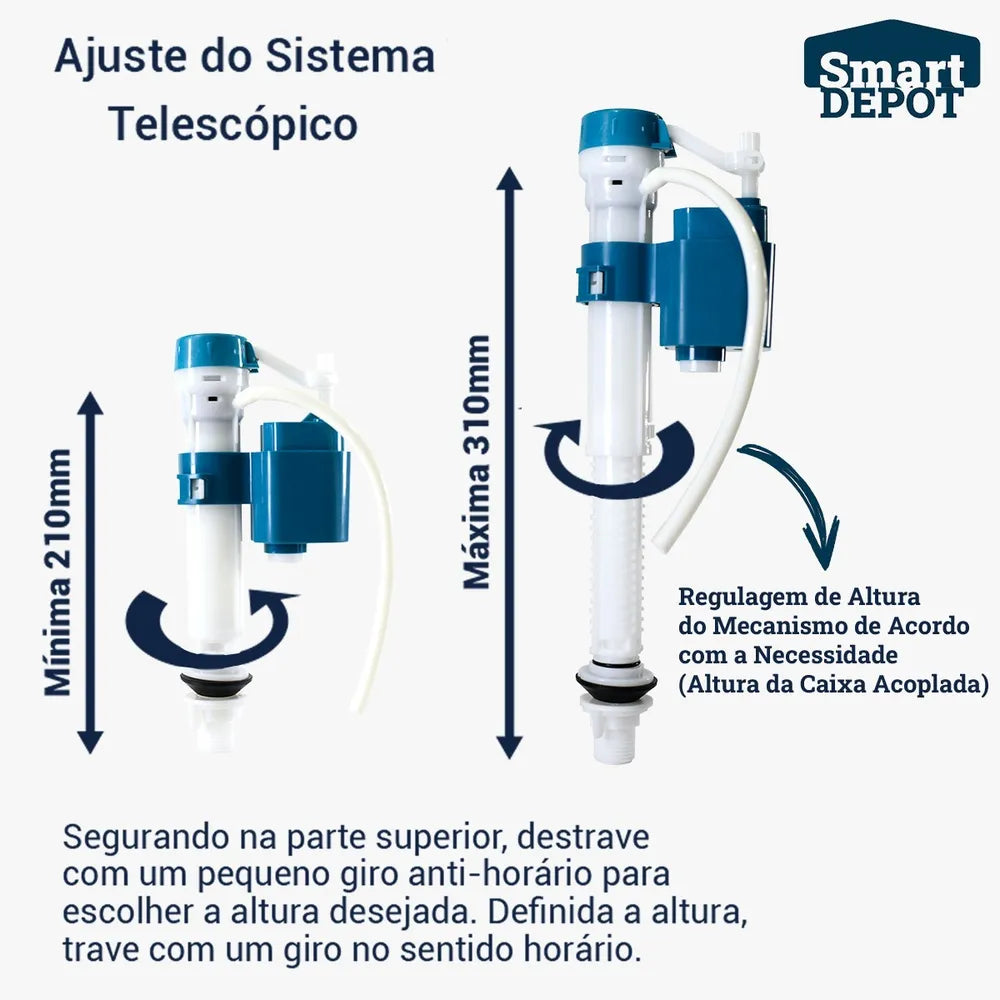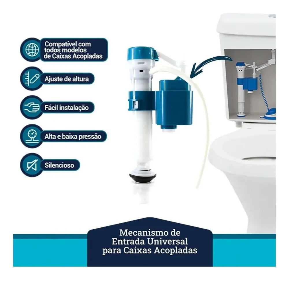 * Universal: Por conta do sistema de regulagem de altura, é ideal para todos os modelos de caixa acoplada