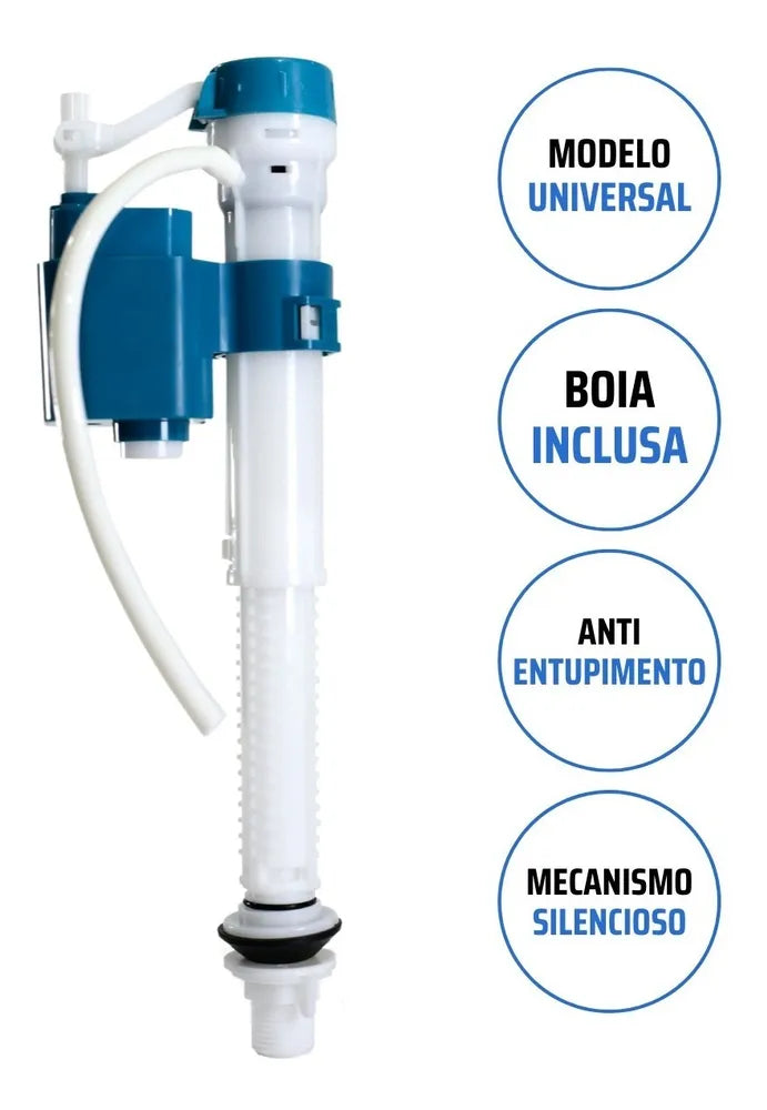 Resposta: SIM. Mecanismo Universal moderno com boia já integrada, deixando o conjunto mais resistente e facilitando a instalação. Além de gerar mais espaço dentro da caixa para ajustes. (MESMA EFICIÊNCIA DE UMA BOIA COMUM)