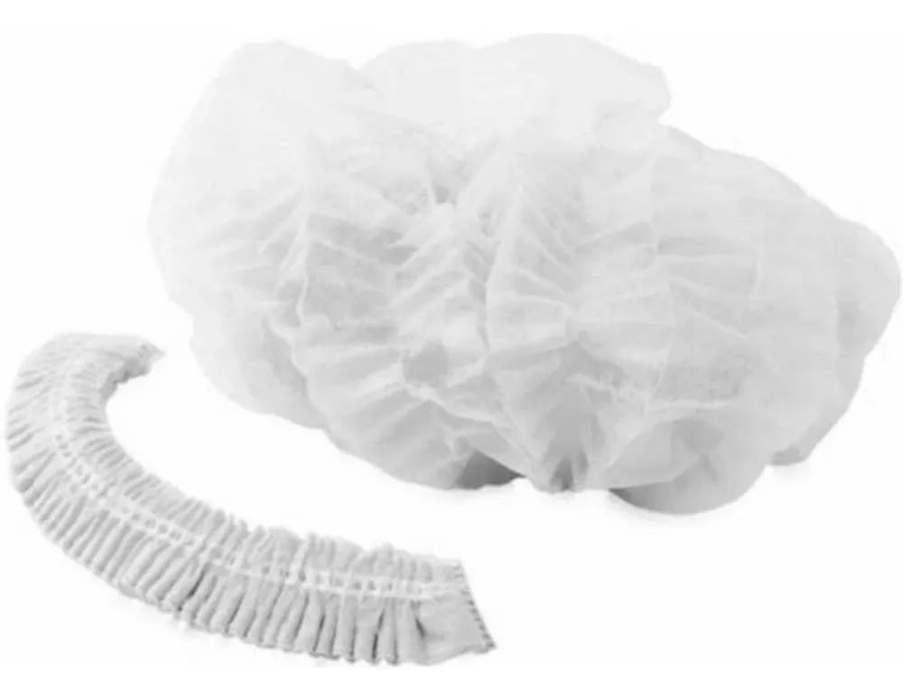 Toucas de proteção sanfonadas em formato de tiras, fabricadas em tecido não tecido (TNT), com elástico simples, atóxico, descartável, de uso único.