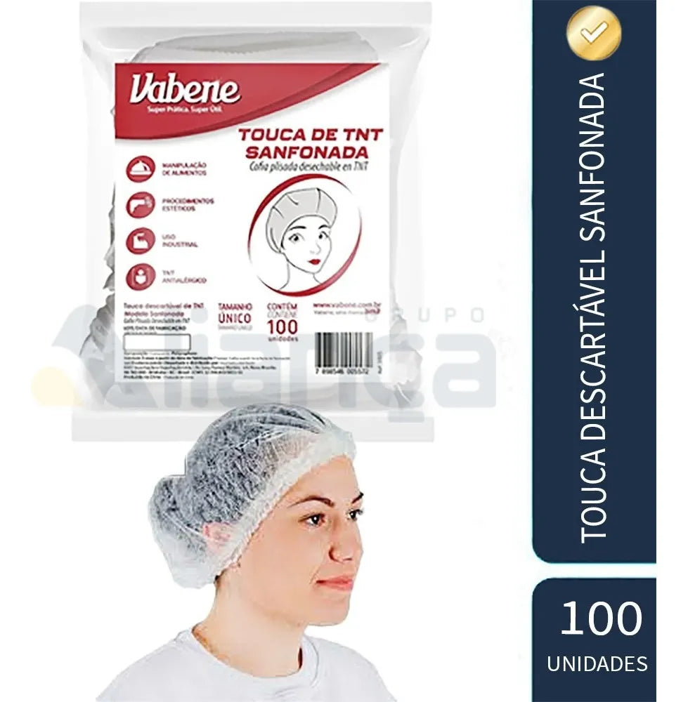 TOUCAS TNT DESCARTÁVEIS SANFONADAS VABENE - 1 PACOTE C/100 UNIDADES.