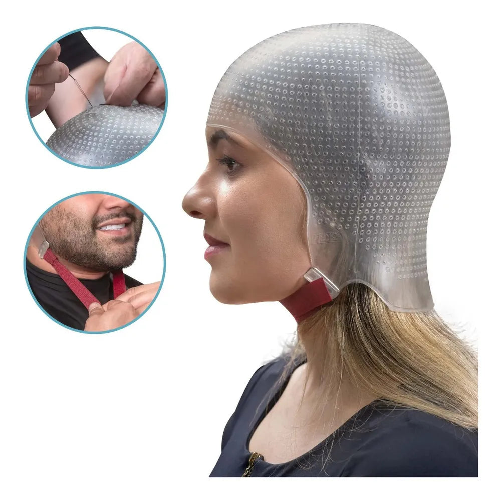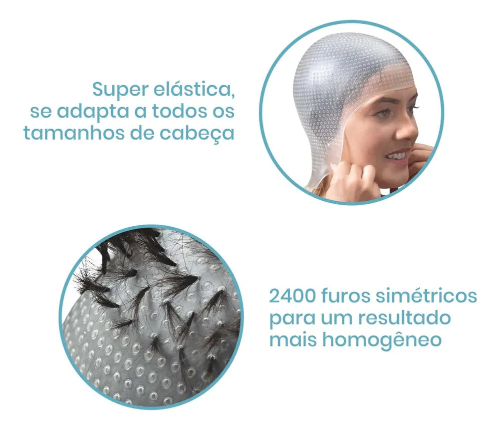 A Touca Sparta 2.4K é um modelo exclusivo desenvolvido pela Dompel. Com aproximadamente 2400 furos, é a touca mais perfurada do mercado, proporcionando um resultado muito mais homogêneo nas mechas. O molde é totalmente anatômico e tem formato negativo, o que significa que se ajusta perfeitamente à região da nuca, facilitando o trabalho em cabelos masculinos e também em cabelos mais longos.