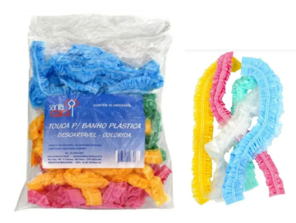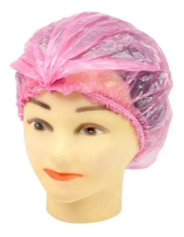 Touca para banho plástica transparente descartável, ideal para proteger os cabelos na hora do banho. Possui elástico em toda volta possibilitando excelente ajuste na cabeça, de modo que fique confortável e não aperte.