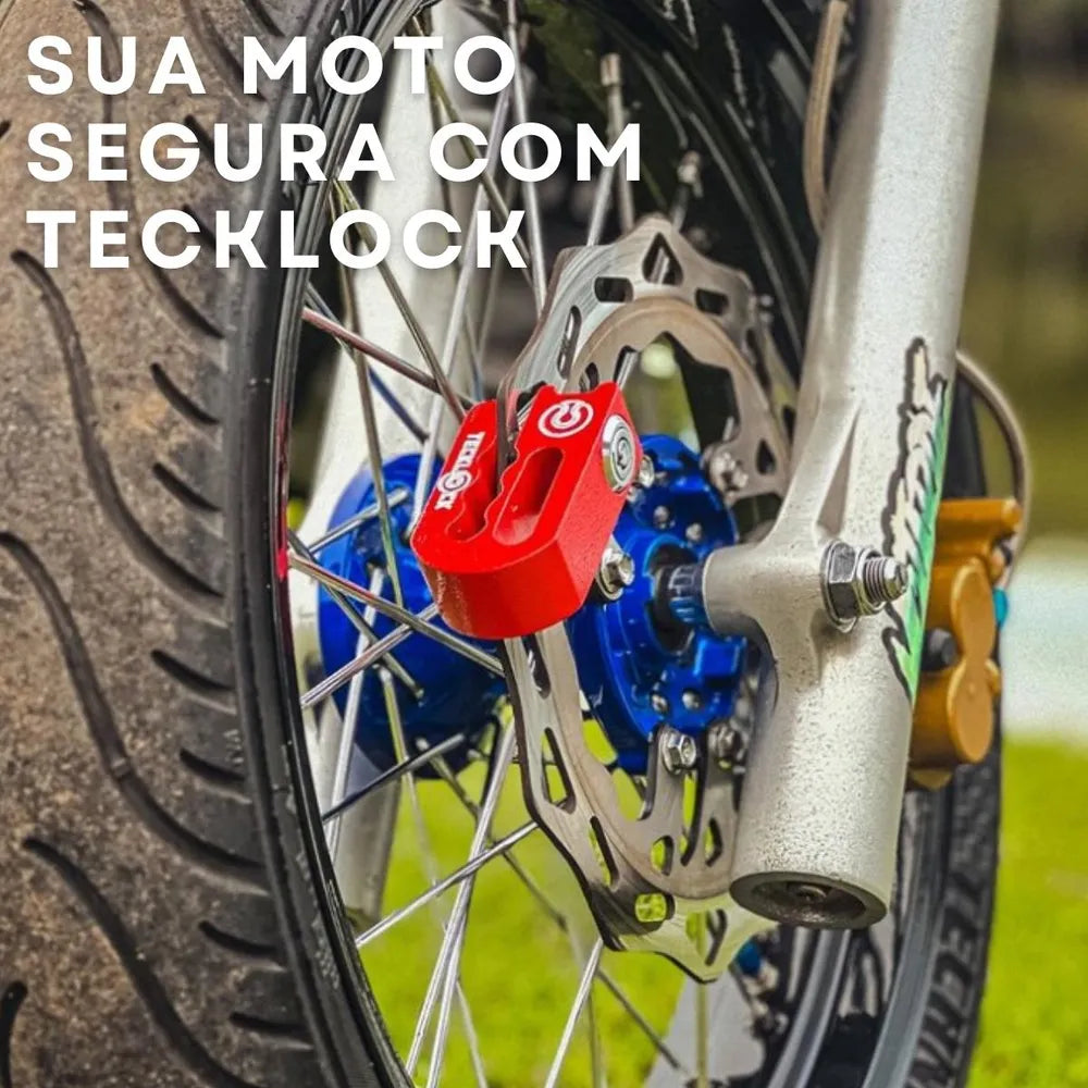 A Trava TeckLock foi projetada para imobilizar o disco de freios da moto, evitando que ela seja movimentada.