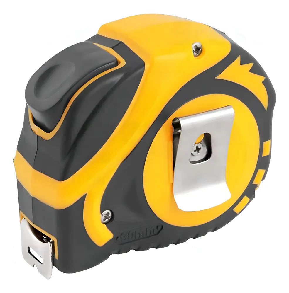 - Gancho autoajustável na ponta da fita permitindo medições internas e externas mais precisas.