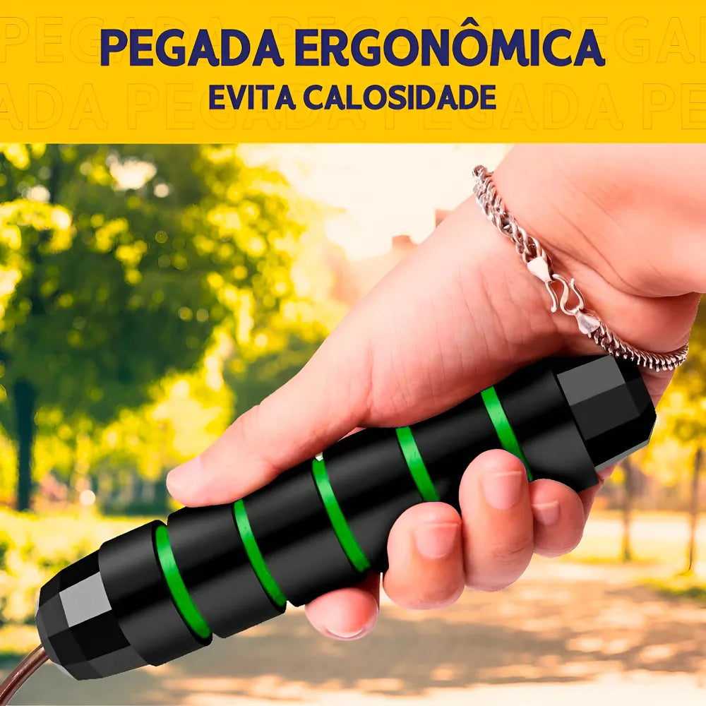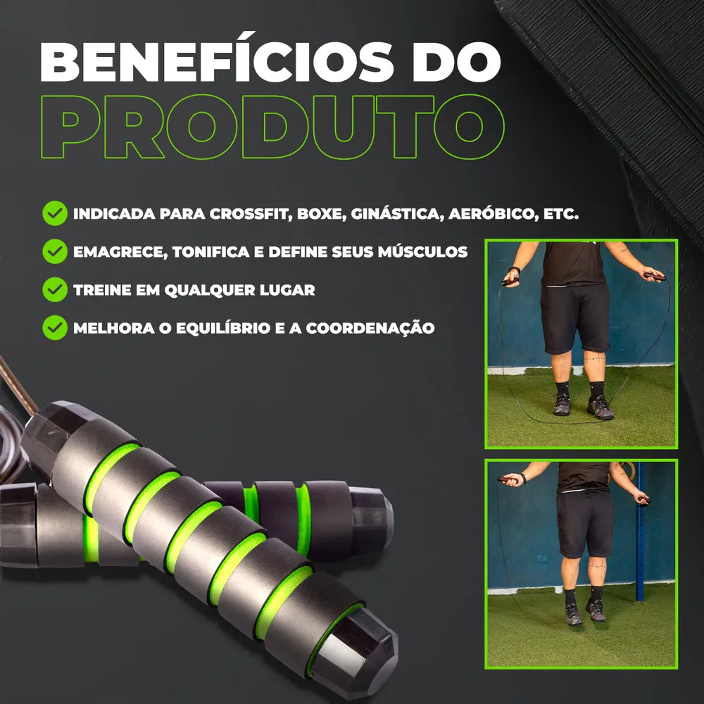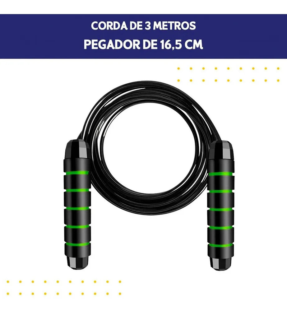 Perca peso de maneira eficiente. Ideal para Crossfit, Boxe, MMA, Aeróbica e exercícios físicos em geral, este equipamento profissional conta com rolamento de alta velocidade e cabo de aço ajustável de 3 metros.
