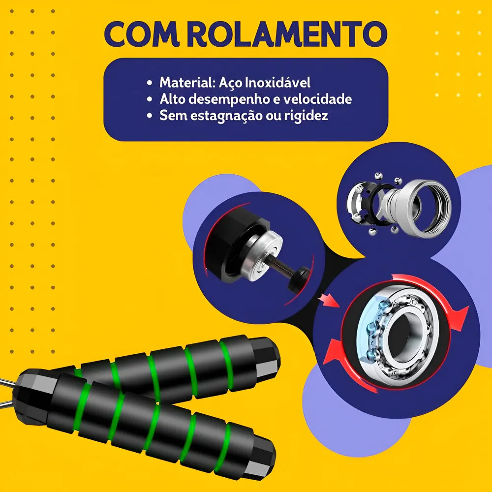• Possui rolamentos em ambas as alças, o que permite a execução em alta velocidade sem embaraçar ou torcer. Movimente-se livremente sem interrupções.