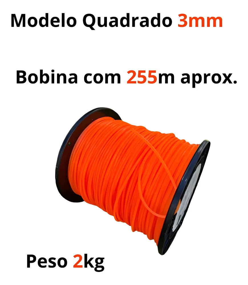 Item: fio nylon quadrado 3,00mm, 2.250kg. Roçadeira. Aprox 255m.